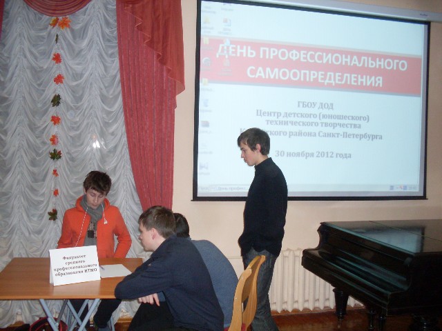 30 ноября 2012 г. в ГБОУ ДОД ЦДЮТТ прошло профориентационное мероприятие для школьников 8-11 классов и их родителей «День профессионального самоопределения».